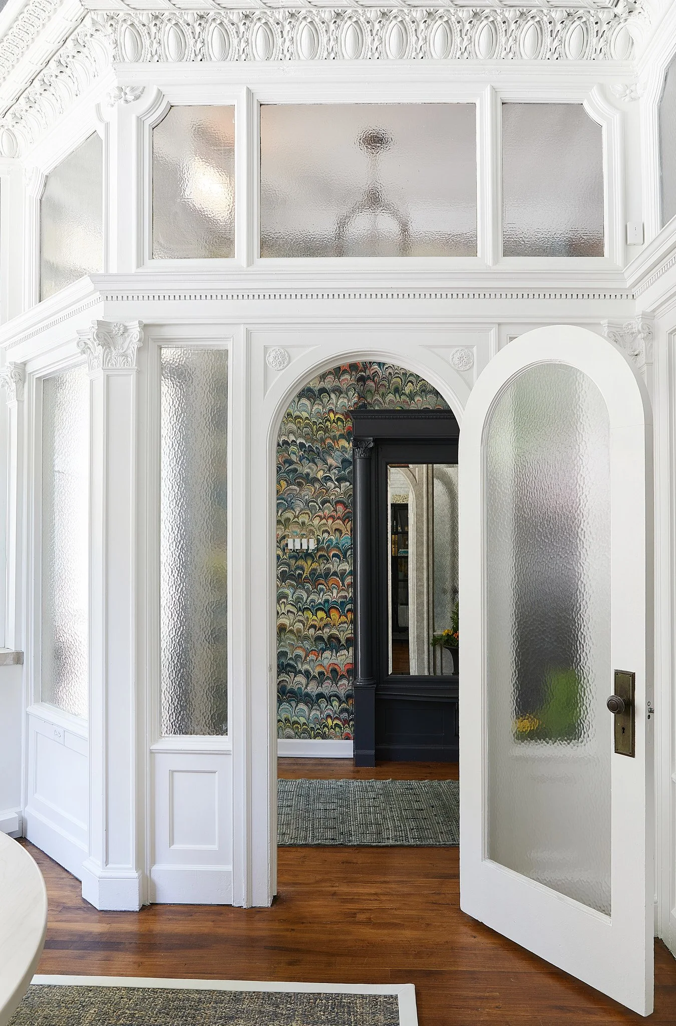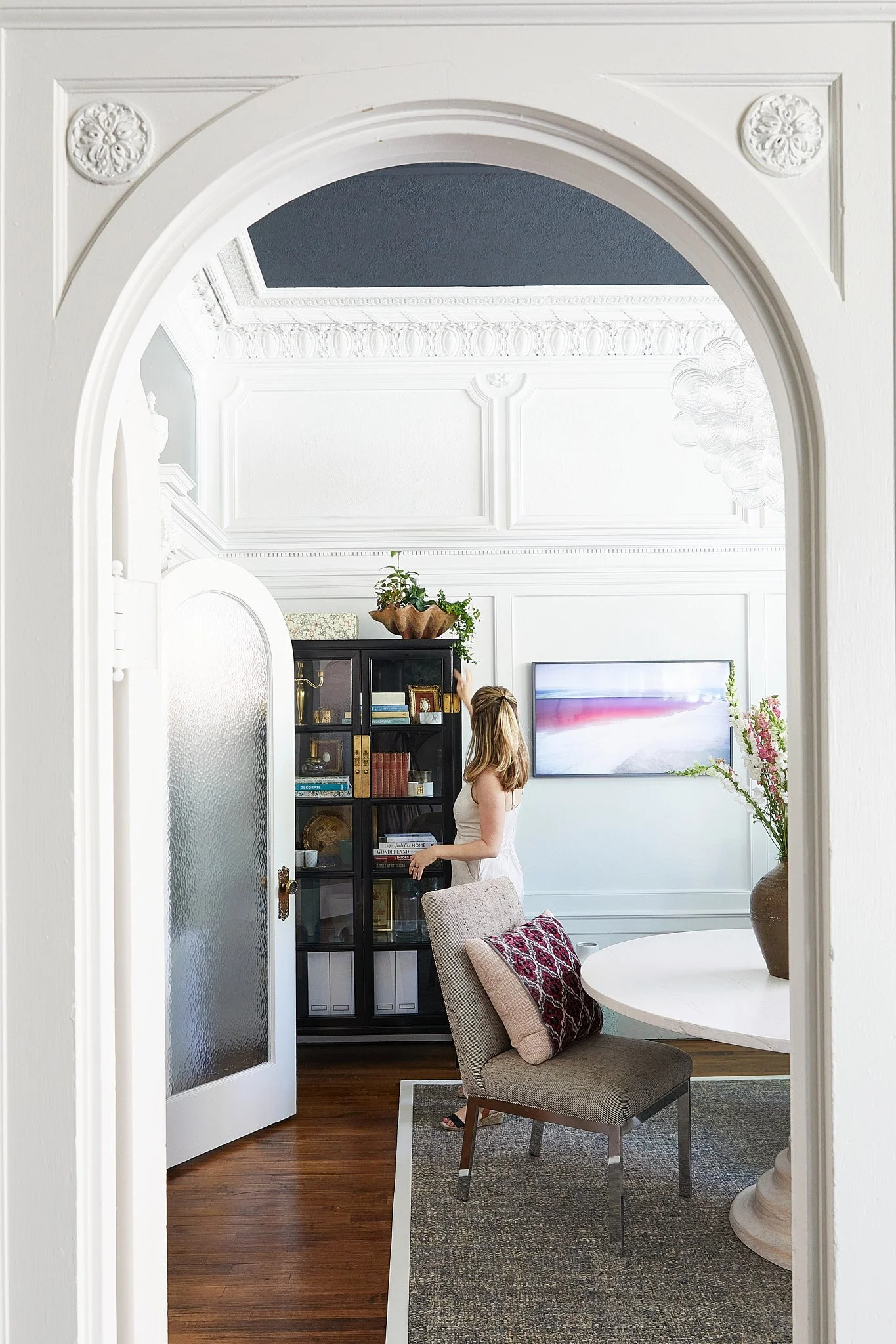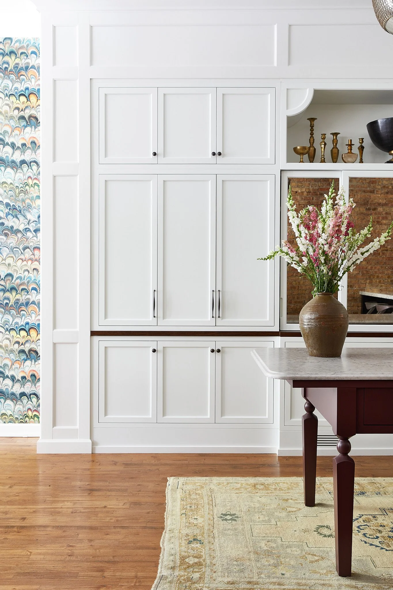 Updated a designer's office in Chicago's Lakeview neighborhood that was previously home to the oldest stained glass company in Chicago, Drehobl Art Glass. We installed period-appropriate millwork that honored the original design of the building. We installed custom cabinetry so the designer can store and display samples in a beautiful setting.