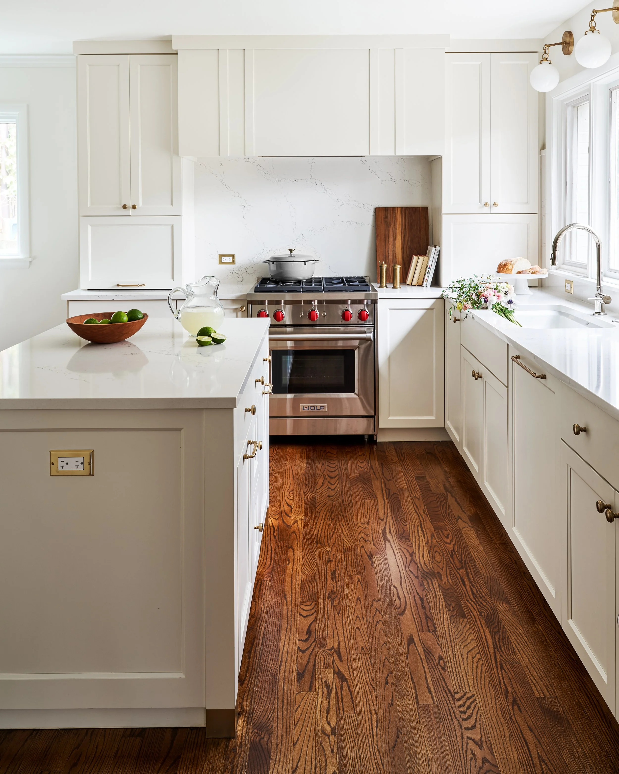 We remodeled a kitchen in one of Chicago's North Shore Suburbs. The project was about making sure that these rooms flowed with how the homeowners used the space. We moved walls, replaced a sliding door with a window, and added new cabinets throughout the kitchen. We moved some kitchen appliances and plumbing, and all new countertops brought the entire room together with a cohesive look.